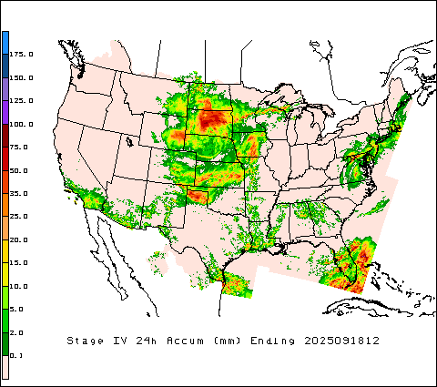 The Stage IV data is a combination of observations and radar calculated reflectivity. Therefore the data combines the advantage of ground-truth provided by gauges with the spatially complete and high resolution radar data. Operationally, Stage IV is widely used for hydrologic verification, flood event forensics, and as precipitation forcing for models and water-resources studies. Data are distributed in GRIB (now GRIB2, after a 2020 format change) and the hourly product is available in near real-time via NOMADS.
